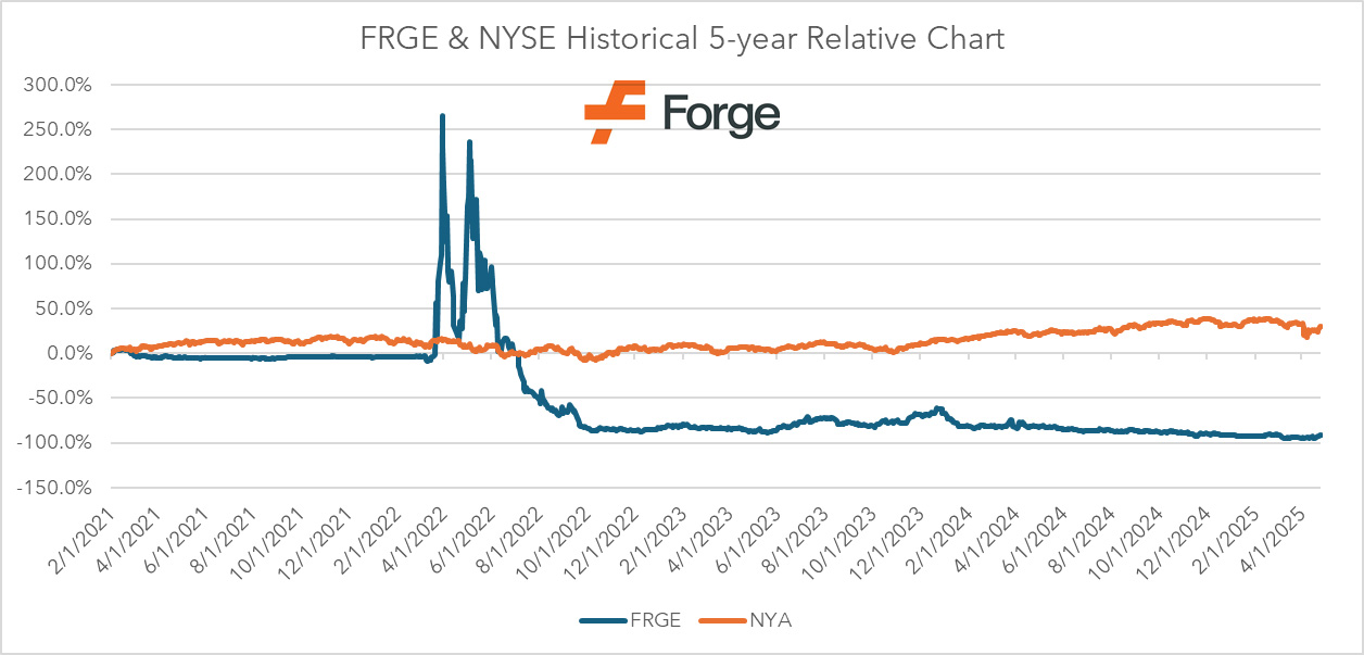 Forge has pursued several strategic initiatives to strengthen its market position and drive growth. In April 2025, the company announced a non-binding letter of intent to acquire Accuidity Capital Management for $10 million in cash and 1.15 million shares, with additional shares contingent on rrevenue milestones.